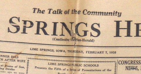 Photo of Lime Springs Herald, February 7, 1935